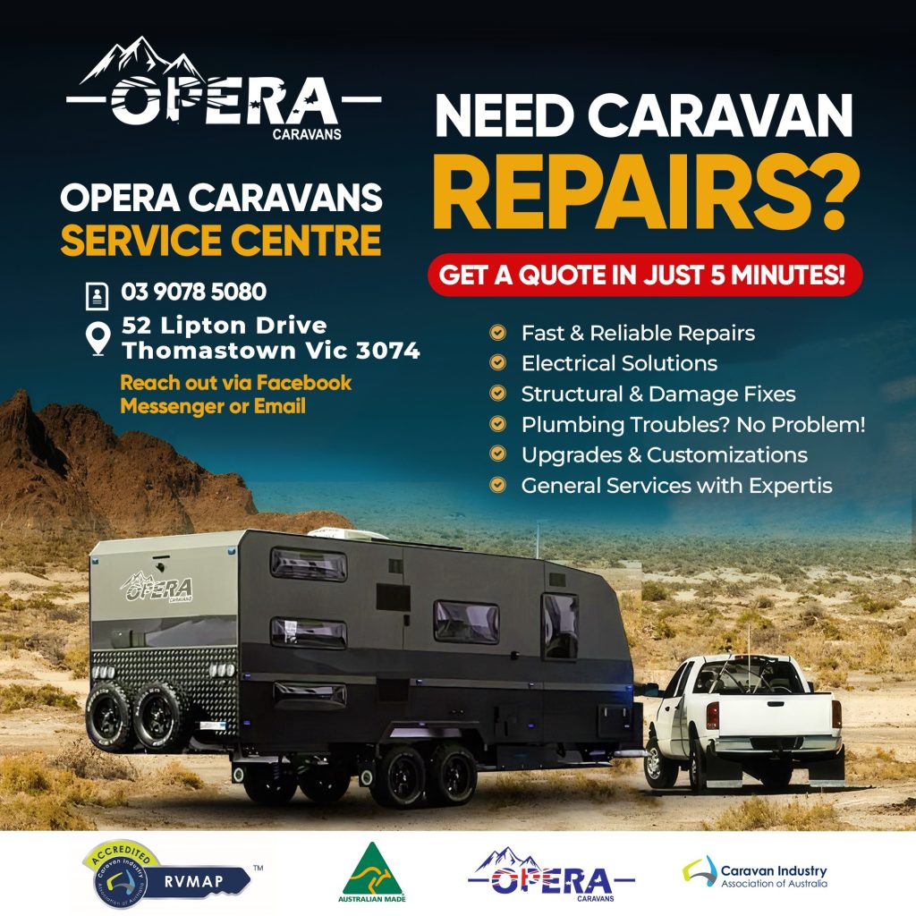 At Opera Caravans, we provide trusted caravan repairs and servicing in Melbourne, Victoria, with a strong focus on quality, safety, and customer satisfaction. Our service centre is fully equipped to handle all types of caravan and RV repairs, from minor touch-ups to major structural fixes.
